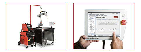 Der Schweißfachmann bleibt Chef des Systems, der Cobot ist sein Werkzeug, die Abarbeitung der Aufträge wird delegiert. Mit dieser Art der Automatisierung lassen sich aktuelle Fragestellungen wie Fachkräftemangel und Kostendruck unkompliziert und mit geringen Investitionskosten lösen. Ein wichtiger Faktor dabei ist, dass beim Einsatz kollaborierender Roboter auf weitere, spezielle Schutzeinrichtungen verzichtet werden kann – alles CE-konform. Durch die Einfachheit bei Installation und Bedienung werden Cobots in kürzester Zeit und ohne aufwändige Schulungen zum selbstverständlichen Teammitglied in Ihrem Betrieb.